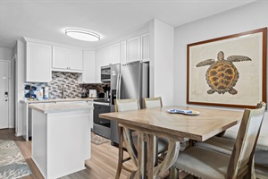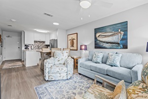 Inside your beautifully decorated unit, comfort and convenience prevail. Two bedrooms, each featuring a cozy queen bed, and two well-maintained bathrooms offer ample space and privacy for your family. The living room, with a sleeper sofa, provides additional sleeping arrangements, while the dining table comfortably seats six. With on-site laundry facilities available, you can pack light and focus on enjoying every moment of your Gulf Shores getaway.