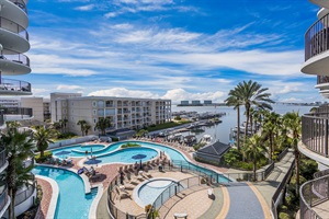 The standout feature of unit 2111 is the expansive, oversized balcony. Being on the ground floor means your outdoor space feels like a private terrace overlooking the heart of the resort. It’s the perfect spot for alfresco dining or morning coffee, all while enjoying the easiest possible access to the water.