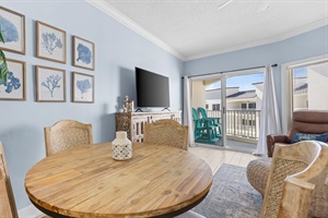 The well-appointed kitchen boasts new countertops & appliances and comes with all the necessary cookware, pots, pans, and utensils to create a gourmet meal. The dining area comfortably seats four, with additional seating for two at the kitchen bar. The cozy living space opens up to a private balcony, providing a peaceful outdoor retreat. For added convenience, the living area also includes a sleeper sofa, making it perfect for guests.