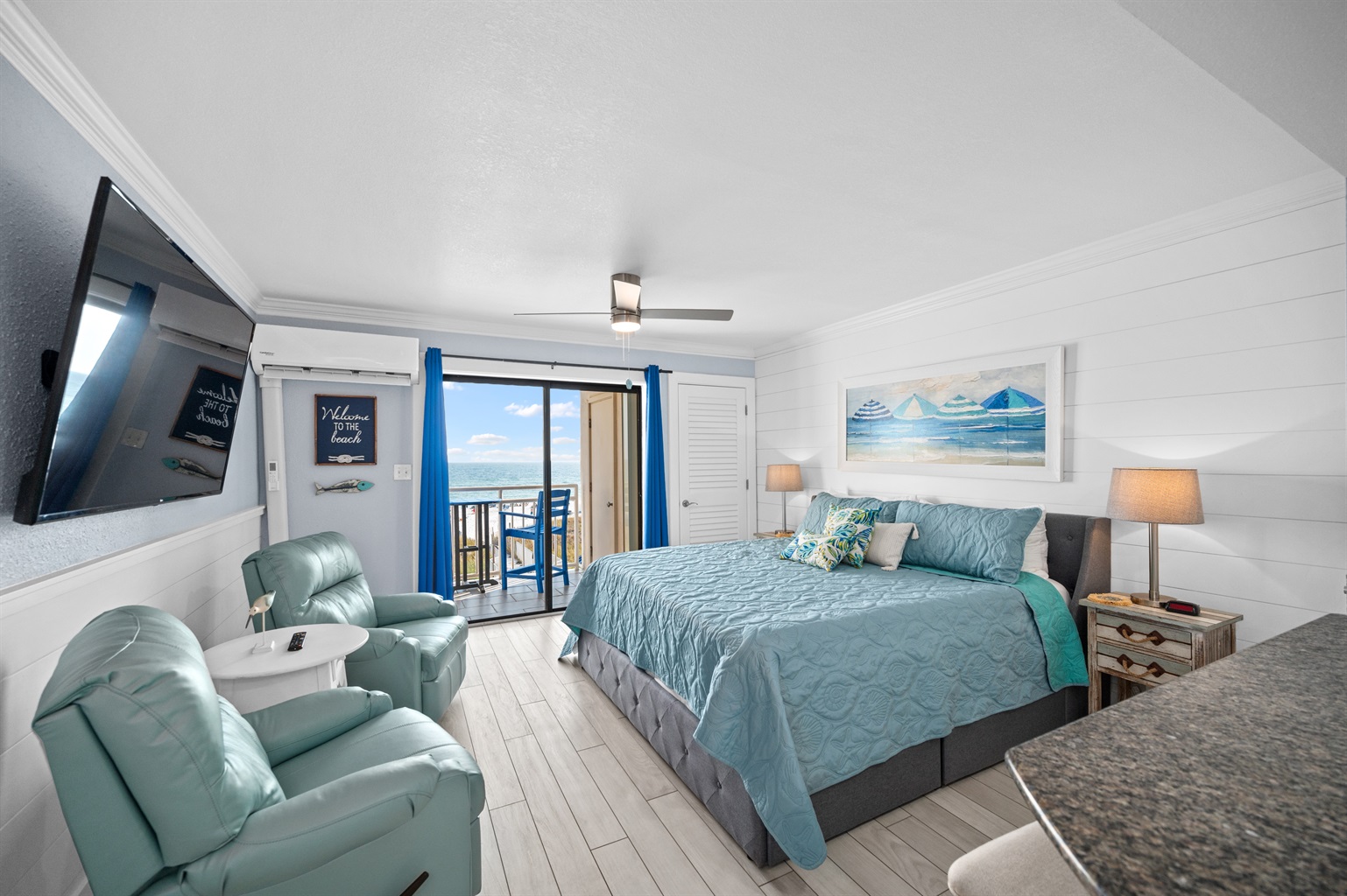 1 Bathroom 1 Bath • Sleeps 1-2This cozy Sugar Beach studio has an amazing direct beach view! Step inside and be greeted by a cozy yet elegant living space, where every detail has been carefully curated for your comfort and enjoyment. The open floor plan features a plush king bed, ensuring a restful night's sleep. (Unit sleeps 2)