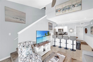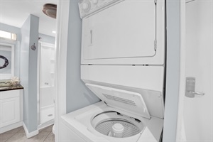 Relax on the furnished balcony, taking in the Gulf Coast’s sights and sounds, perfect for morning coffee or sunset views. Stay entertained with the living area’s flat-screen TV, while the in-unit washer and dryer keep your beach gear fresh and ready for adventure.
